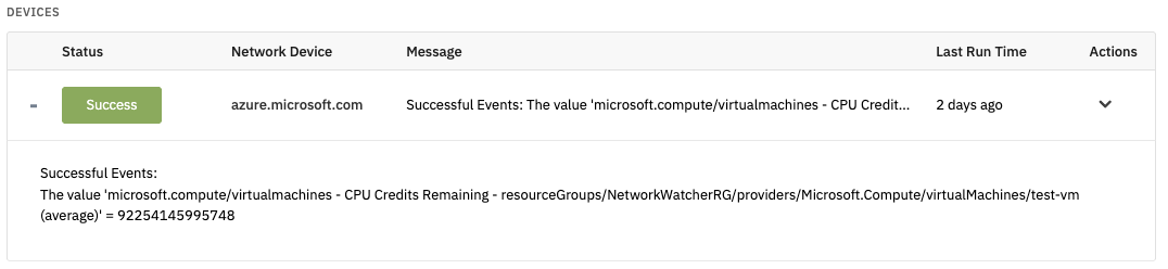 When you've filled out the fields for all the Azure metrics you want to monitor with FrameFlow, save and run the event monitor. You'll receive a response from the event monitor including any alerts generated by the parameters you've filled in. This event monitor, like all of our monitors, can run on any schedule you choose, ensuring round-the-clock integrated monitoring.