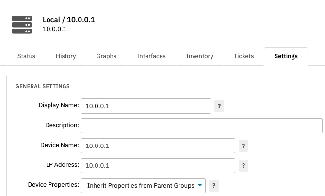 To turn on device property inheritance for a network device, go to the Settings section of the desired device. Under "Device Properties", toggle the option from "Do Not Inherit Properties" to "Inherit Properties from Parent Group". After that, when you add the device to a group with inheritance turned on, the device will take on the settings of the group it's in.