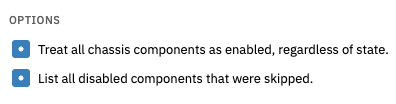 This event monitor also gives you the option to treat all chassis as enabled, regardless of state. Check the box next to this option to enable it. You can also choose to include a list of disabled and skipped components in the event text generated each time the event monitor runs.
